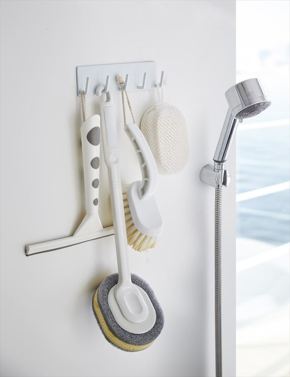 風呂桶や片手桶を掛けておくのにも便利。風呂掃除道具の収納にも便利。マグネットが付く浴室壁面に簡単取り付けの5連フック。置き場所に困るブラシなどの収納に便利。磁石がくっつく浴室壁面に簡単取り付けのバスシリーズ。壁面を傷付けにくく、錆びないラバータイプのマグネット。貼り付け位置が簡単に調節可能。