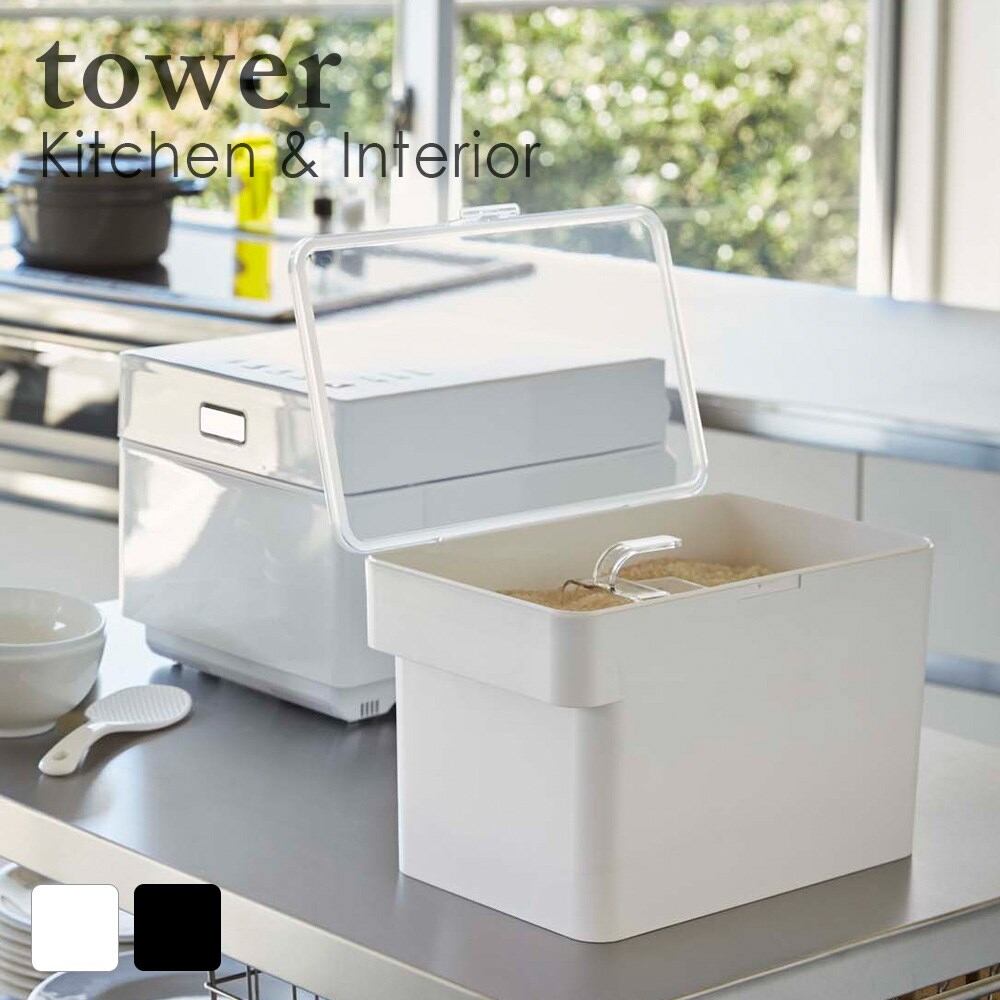 密閉 シンク下米びつ タワー 5kg 計量カップ付 WH キッチン おしゃれ 人気