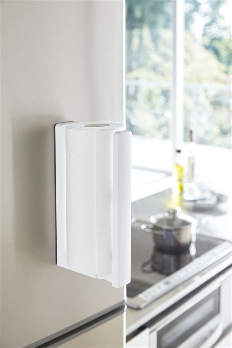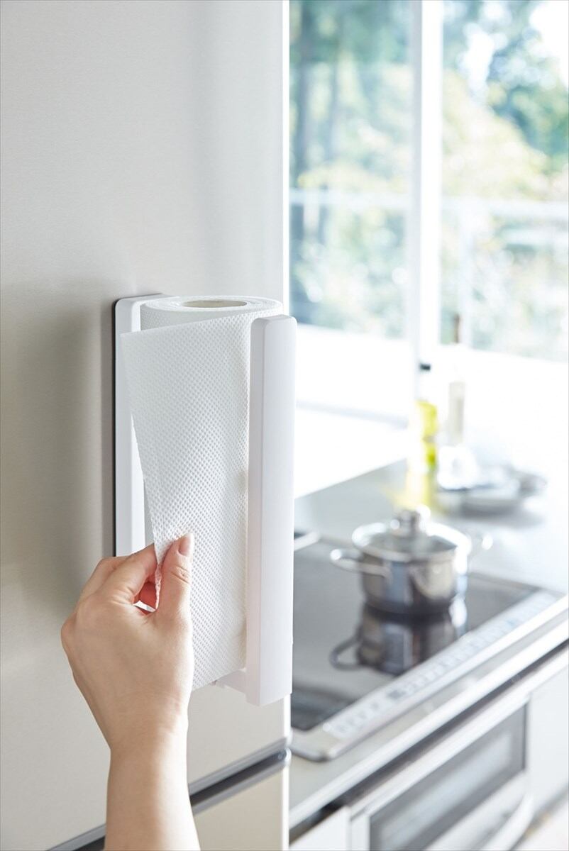 冷蔵庫の扉や側面にマグネットで簡単取り付け!片手で切れる!キッチンペーパーホルダー。