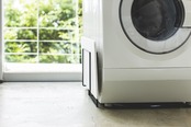 洗濯機横にマグネットで貼り付けるだけ。置き場所に困る珪藻土バスマットをスリムに立てて収納。奥行約5cmのスリム収納。