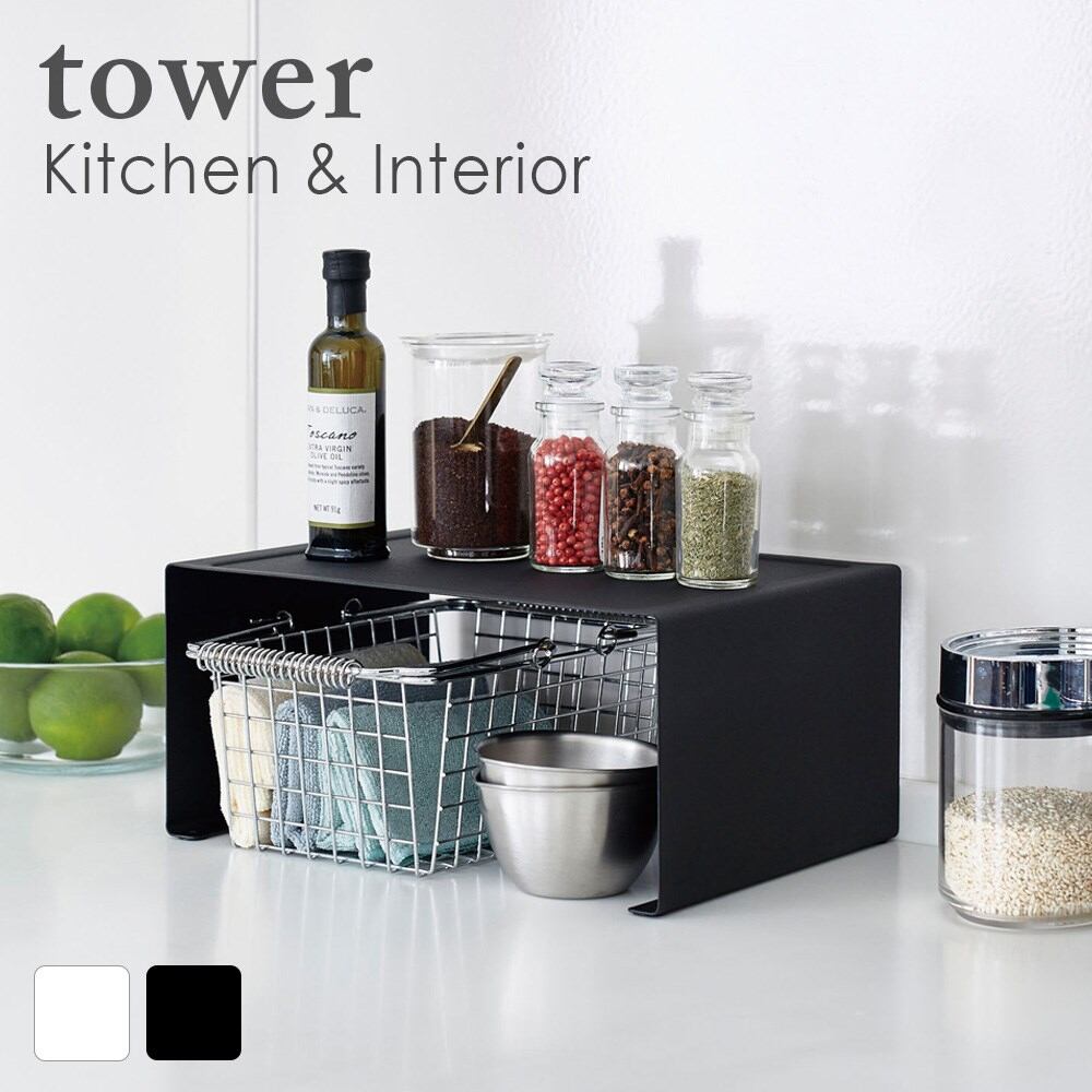 キッチンスチール コの字ラック タワー L ホワイト ブラック キッチン おしゃれ 人気