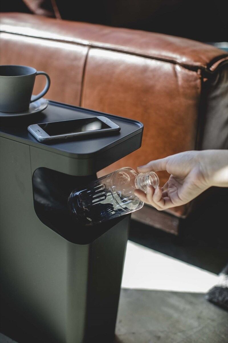 ゴミ箱上のスペースをテーブルにした、スタイリッシュなデザインのダストボックス+テーブル。蓋の開閉をする必要がないのでゴミをスムーズに捨てられます。シンプルなデザインなのでリビングや寝室など置く場所を選びません。背面には取っ手が付いているので、掃除の際の移動も簡単。ハンドル付きの袋留めリングなので、袋の入れ替えもスムーズです。