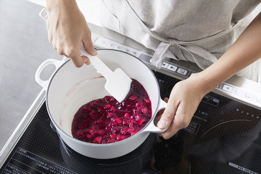 お菓子作りや料理の食材を混ぜたり、練ったり、裏ごししたりするのに便利なヘラ。先端が浮くので直置きにならずに清潔。ヘラがしなるので、ボウルに残った料理を簡単に集められ、きれいにすくい取れます。シリコーンでコーティングされているのでボウル・ナベなどを傷つけません。