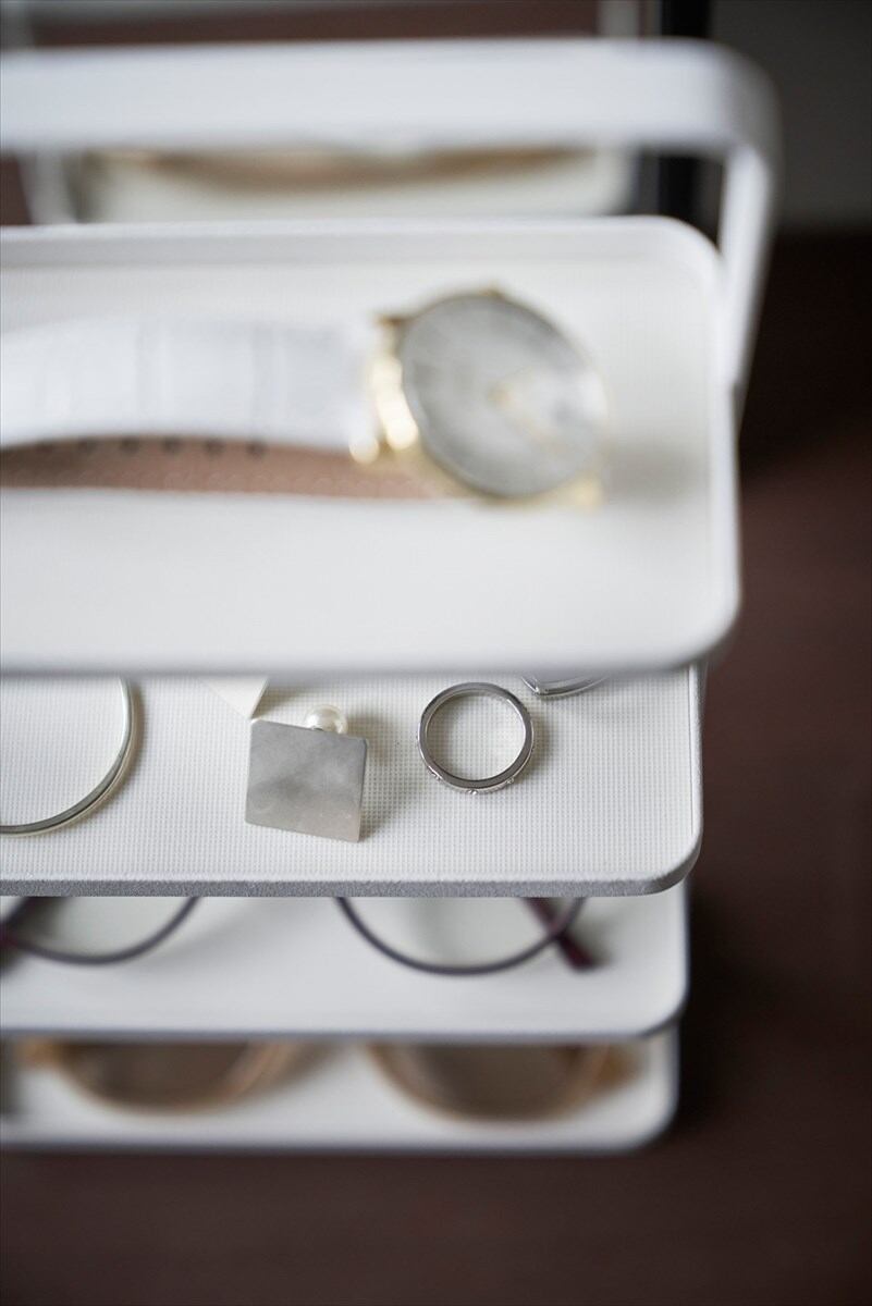 メガネやサングラス、時計やアクセサリー類からステーショナリーまで収納可能!持ち運びに便利なハンドル付きの4段収納トレー。