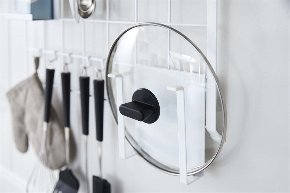 レンジフードに簡単取り付けの組み合わせ自在収納パネル。 レンジフードに簡単設置。使いたいときにサッと使える便利な収納パネル!別売の収納パーツを組み合わせて自分仕様のオリジナル収納をつくることができます。別売の収納パーツ無しでも付属の10本のフックで様々な収納が可能。ラップ類や布巾、キッチンツール、スパイスボトルなど、普段使っているキッチン道具を収納。