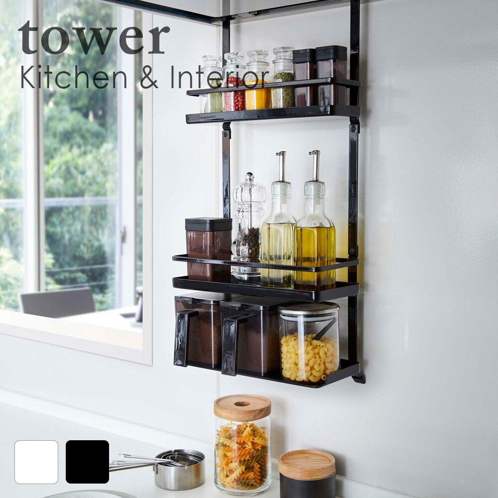 レンジフード調味料ラック タワー 3段 ホワイト ブラック おしゃれ 人気