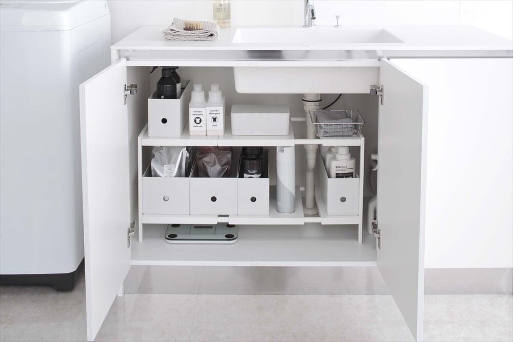 伸縮シンク下ラック 2段 タワー D30 ホワイト ブラック おしゃれ 人気