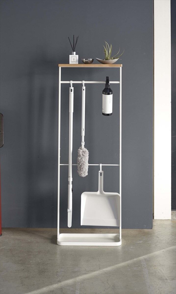 傘を引っ掛けて収納する天板付きのアンブレラスタンド。天板には鍵や時計などを置いて、玄関先を整頓してくれます。付属のフックを使えば、折り畳み傘や靴べらなどの収納場所に困る小物をまとめて収納できます。掃除用品などをまとめて収納するのにも便利です。