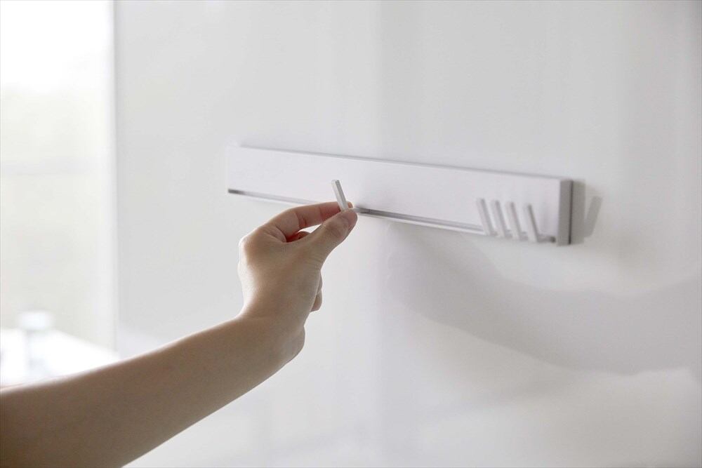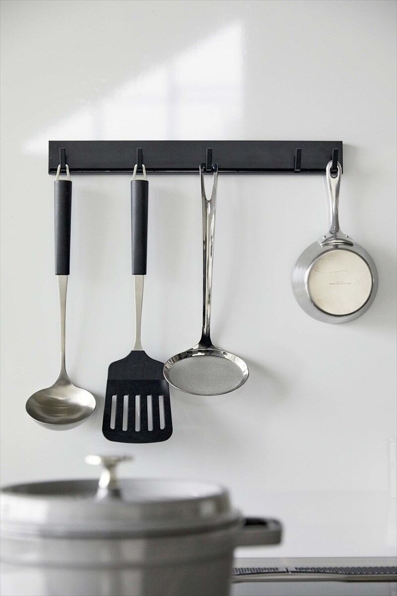 マグネットで簡単取り付けの可動式キッチンツールフック。キッチンツールを重ねずに収納できます。収納する物に合わせてフックの位置を調整できます。フックは横にスライドさせるだけ。移動もスムーズです。フックは収納するものに合わせてスライド。