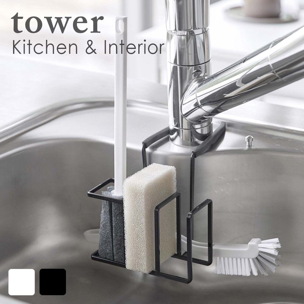 蛇口にかけるスポンジ&ブラシホルダー タワー ホワイト ブラック おしゃれ 人気
