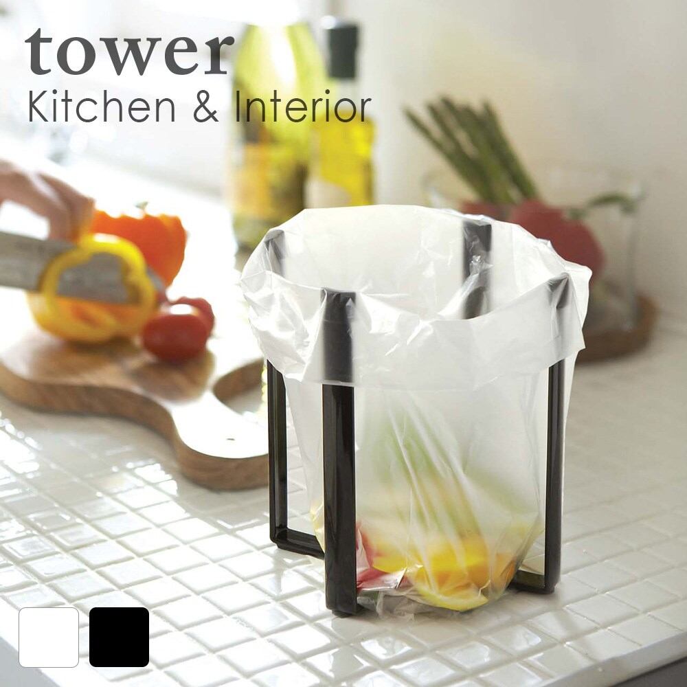 ポリ袋エコホルダー タワー ホワイト ブラック キッチン おしゃれ 人気