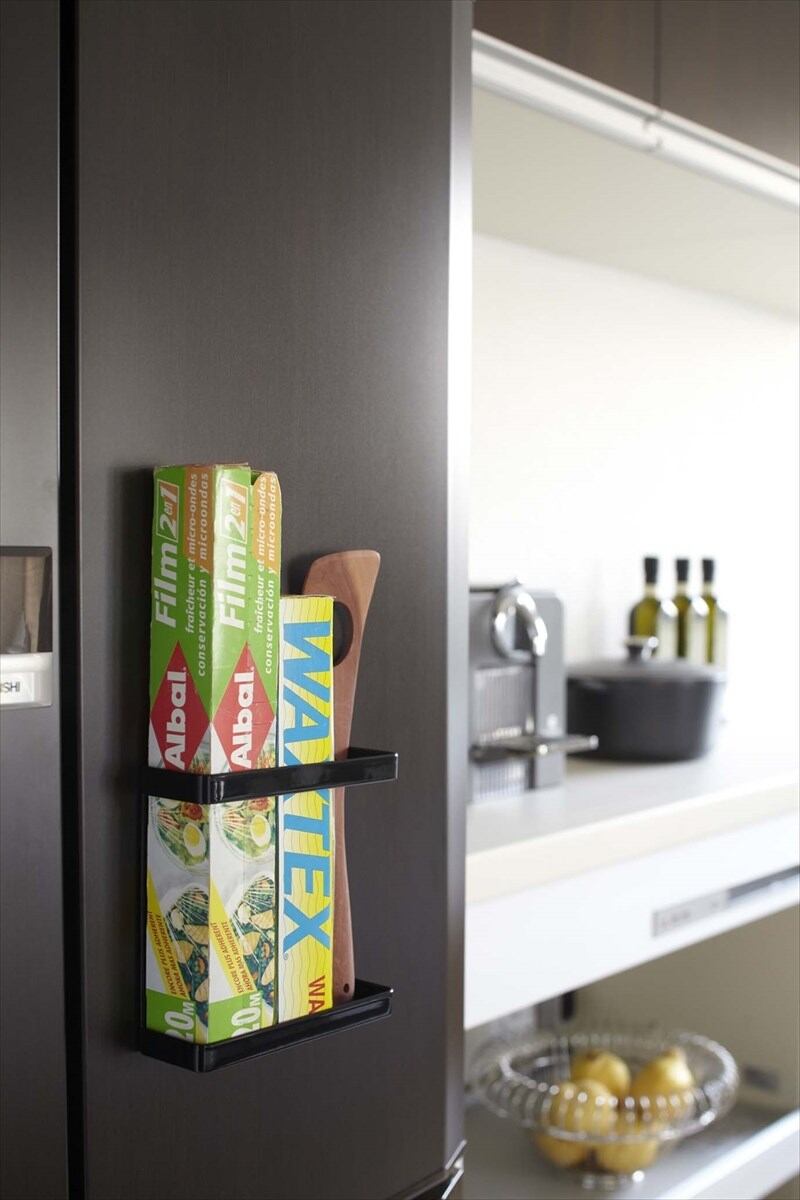 冷蔵庫横などにマグネットで簡単取り付けのラップホルダー。