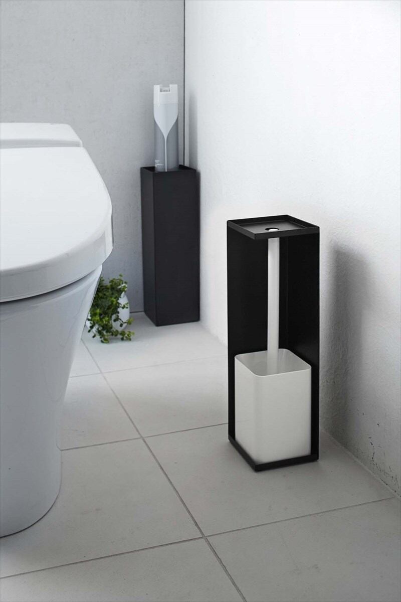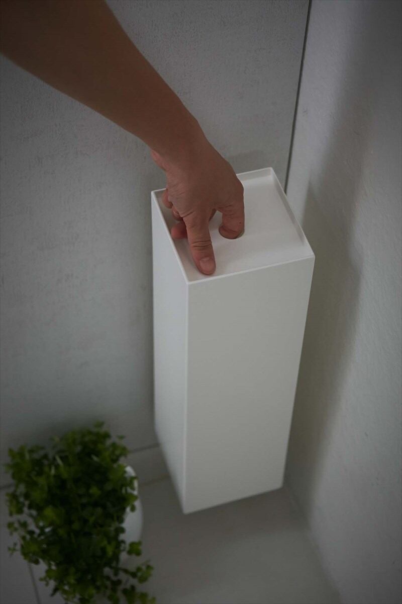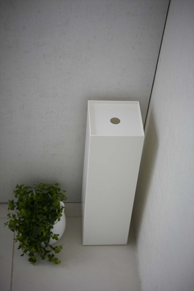 トイレットペーパーをコーナーに美しく隠して収納。コーナーに置けば存在を主張せず、空間に美しくなじみます。 上はトレイになっているので、芳香剤や消臭スプレーを置くことができます。