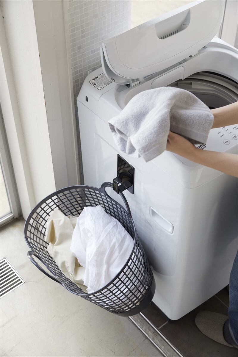 強力マグネットで洗濯機に取り付けるだけ!ランドリーバスケットを浮かせてスッキリ整頓!収納するものに合わせて、縦向き・横向きどちらでも使えます。スプレーからハンガー・ピンチハンガーなど様々なものを収納できます。