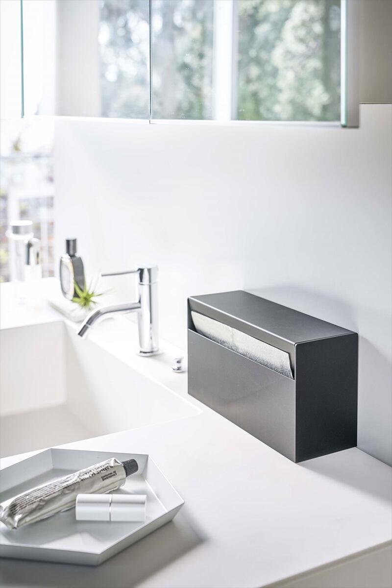置いても、壁に付けても使える、前から簡単に交換ができるスマートなペーパーホルダー!フィルムフックで壁面に浮かせて取り付けできるから衛生的。穴が目立たない石こうボードピンで壁にも取り付けられます。ボックス・袋入りのティッシュぺーパー・キッチンペーパー・ペーパータオルに対応。