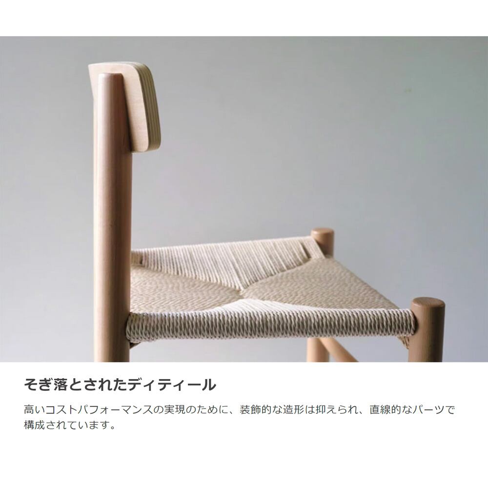 元々は庶民のための、とはいえ本来は高価な北欧デザイナーズ家具。素材はヨーロッパ産のビーチ(ブナ)材を使用し、信頼のできる中国工場で厳しい品質管理のもと生産することで、美しい仕上がりとリーズナブルな価格を両立したリプロダクトとして実現しました。