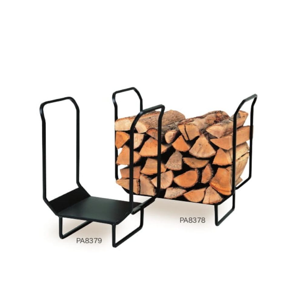 伝統的デザインに薪屑こぼれ防止の底板が付いたウッドホルダー。