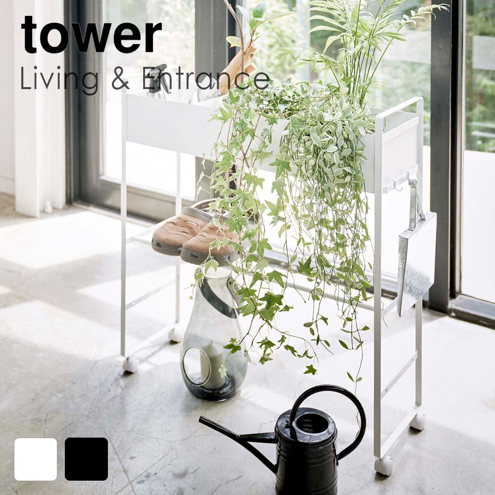キャスター付き 玄関収納ラック タワー ホワイト ブラック 山崎実業 北欧 モノトーン おしゃれ 人気