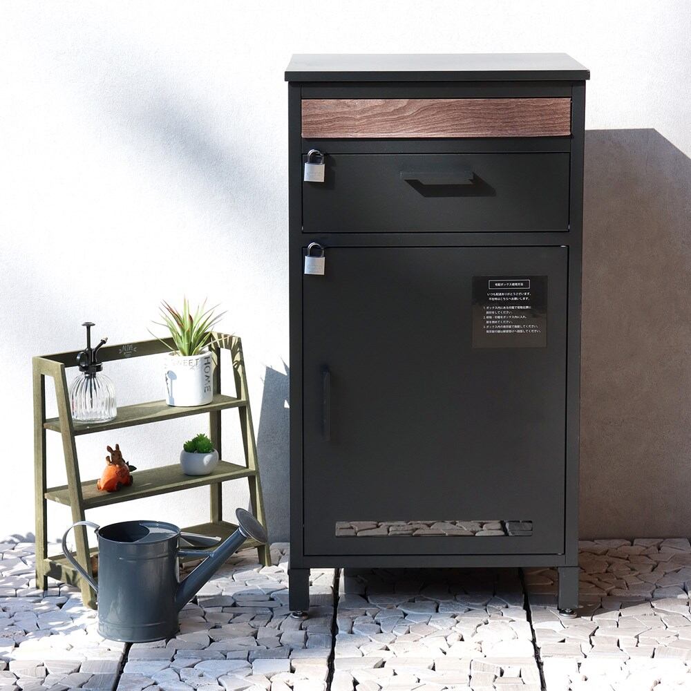宅配ボックス付ポスト Jake(ジェイク) 南京錠用 確認窓付き キーフック付印鑑ケース 宅配業者用の配達マニュアル付 錆びにくい おしゃれ 木目 北欧風 西海岸風 ヴィンテージ風 韓国インテリア 正規輸入品 北欧 おしゃれ 人気 韓国インテリア