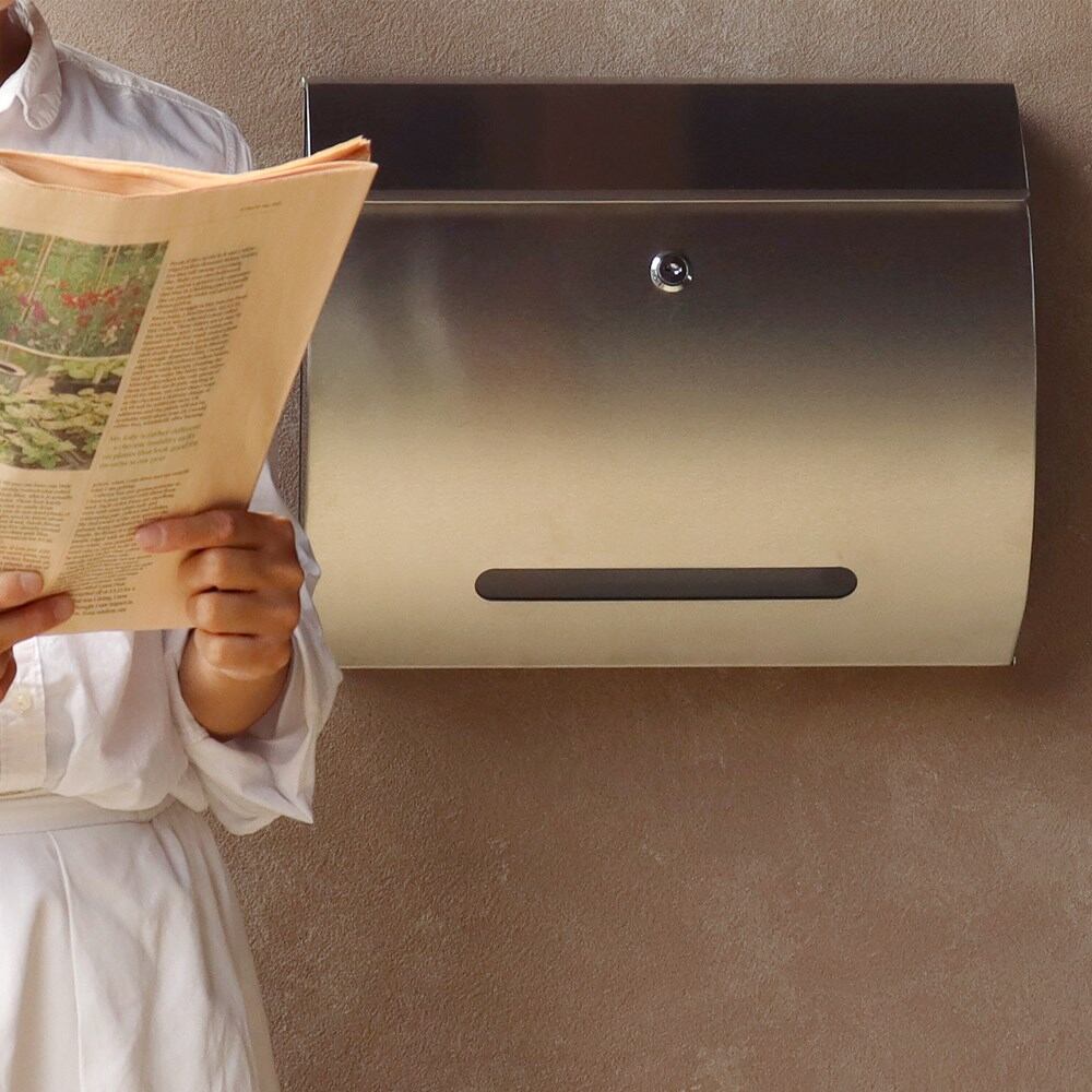 壁掛けポスト Mauro(マウロ) 鍵付き スペアキー付き 確認窓付き 錆びにくい ステンレス ヘアライン仕上げ 郵便ポスト 郵便受け おしゃれ 北欧風 西海岸風 ヴィンテージ風 韓国インテリア 正規輸入品 北欧 おしゃれ 人気 韓国インテリア