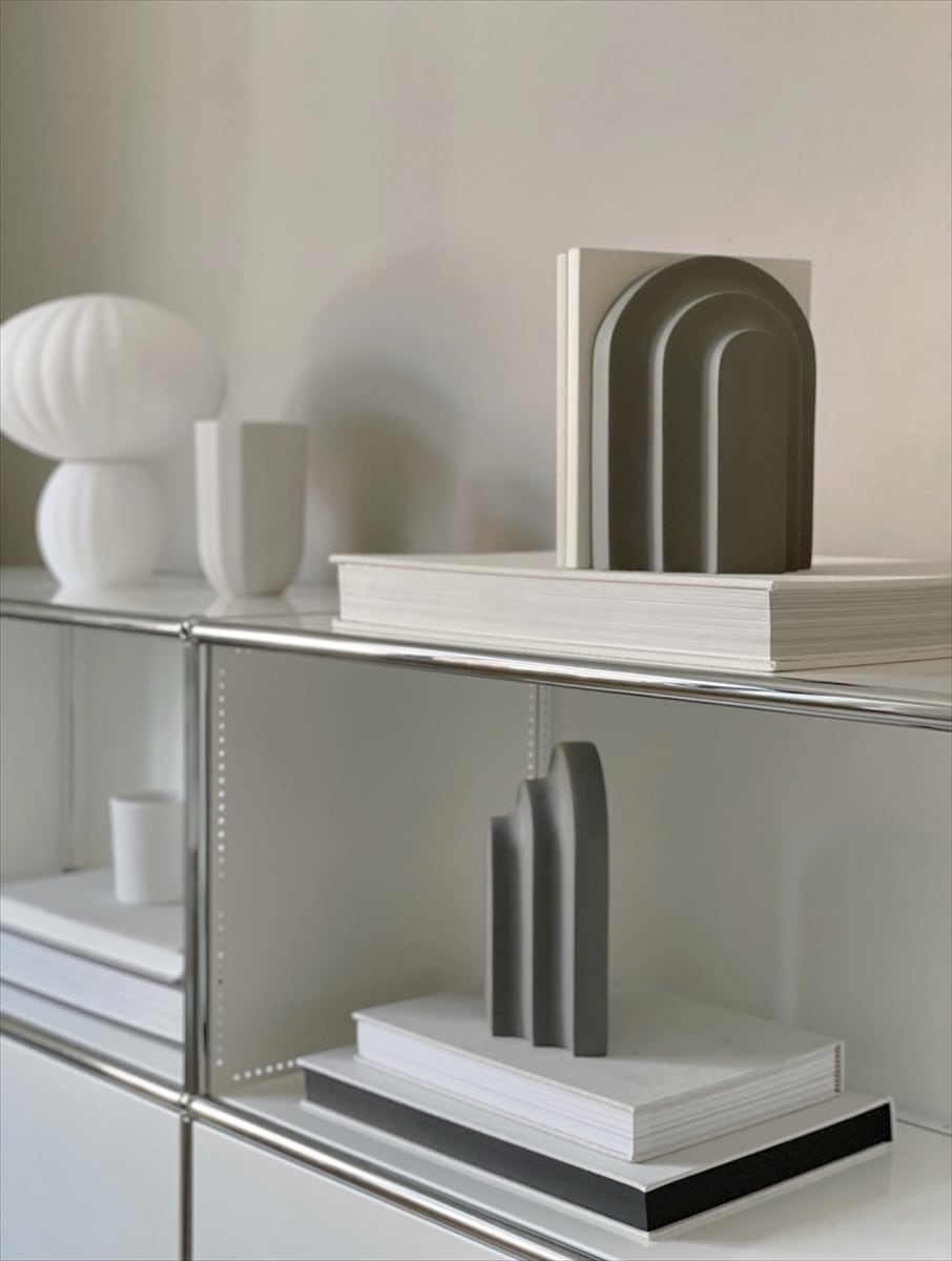 古典的な門や柱の機能や建築様式にインスパイアされたデザインのアーカイブブックエンド。