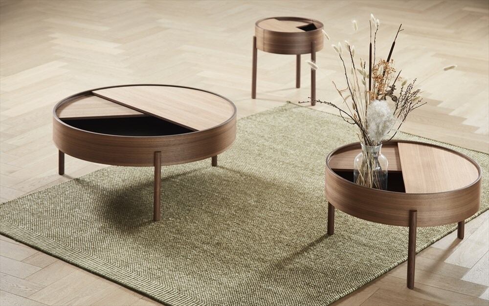 WOUD アークサイドテーブル ウォルナット 木目調 木製 サイドテーブル 机 マルチテーブル カフェテーブル ティーテーブル ローテーブル ミニテーブル 収納 円 丸 おしゃれ 北欧 人気
