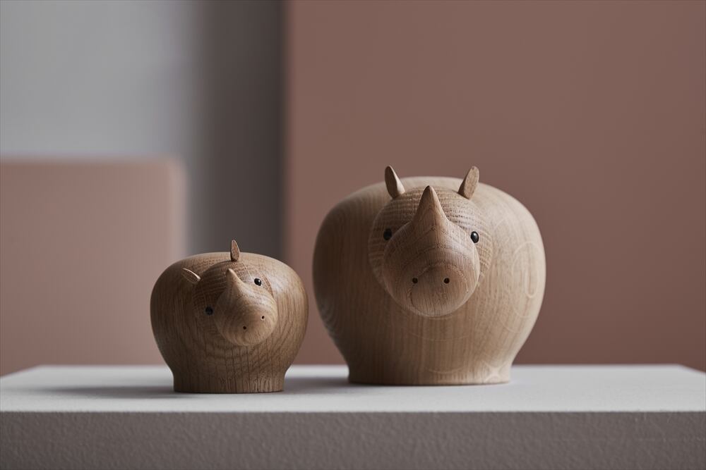 WOUD リナ ライノセラス ミニ ナチュラル 置物 オブジェ 木材 サイ 動物 木彫り 彫刻 かわいい おしゃれ 北欧 人気