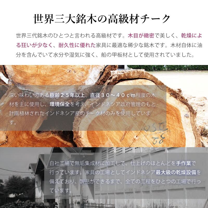 木の質感が最大限に映えるエイジング加工を施したチーク材は、
