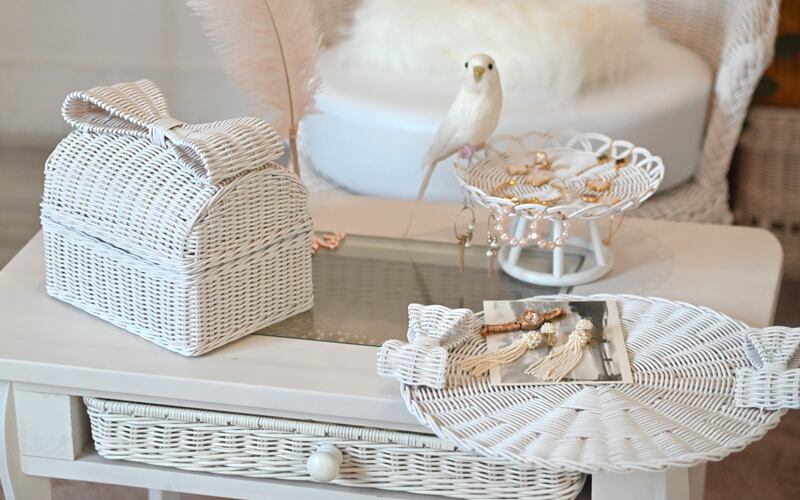 大きなリボンの飾りを籐(ラタン)で編みこんだ、可愛らしいデザイン。
