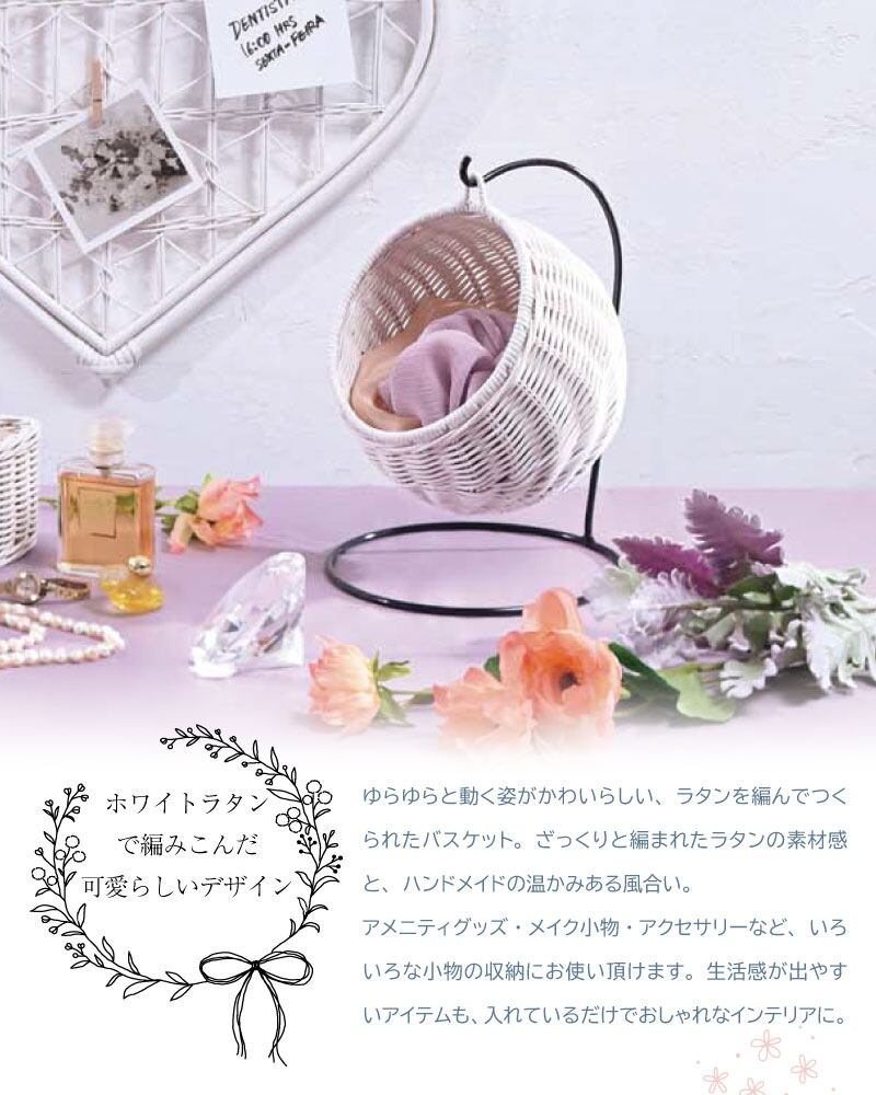 fioreシリーズ [Piu Carina] ホワイトラタン ハンギングバスケット 小物入れ おしゃれ 人気