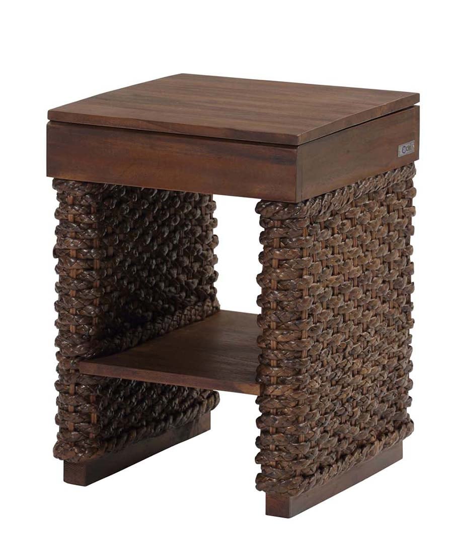 チーク無垢材とウォーターヒヤシンスでつくられたアジアンテイストのサイドテーブル。