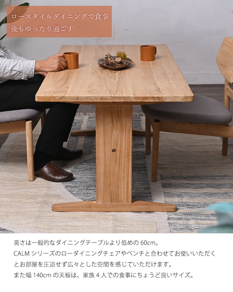 CALM シリーズ チーク無垢材 CLAM ローダイニングテーブル 140cm幅 おしゃれ 人気