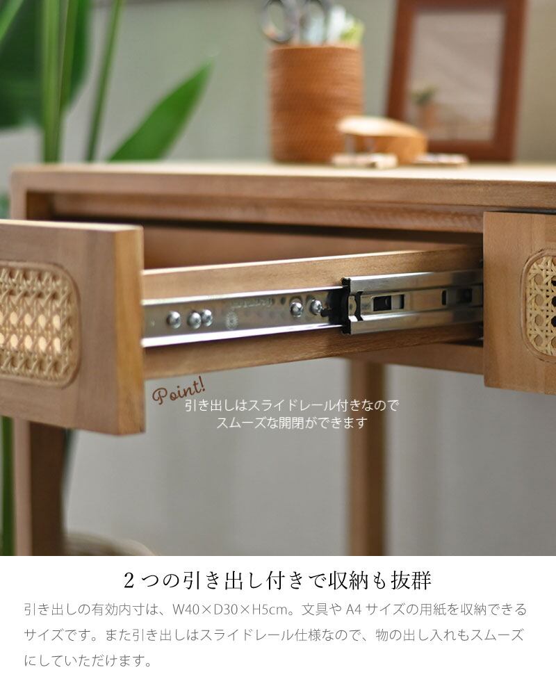 CALM シリーズ ラタン×チーク無垢材 KAGOME コンソールデスク 100cm幅 おしゃれ 人気