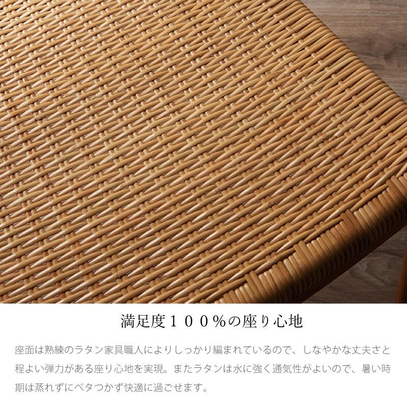 座面はラタン手編み仕上げで、しなやかな丈夫さと心地良い弾力があります。