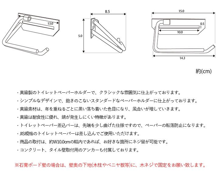 ・真鍮製のトイレットペーパーホルダーで、クラシックな雰囲気に仕上がっております。