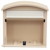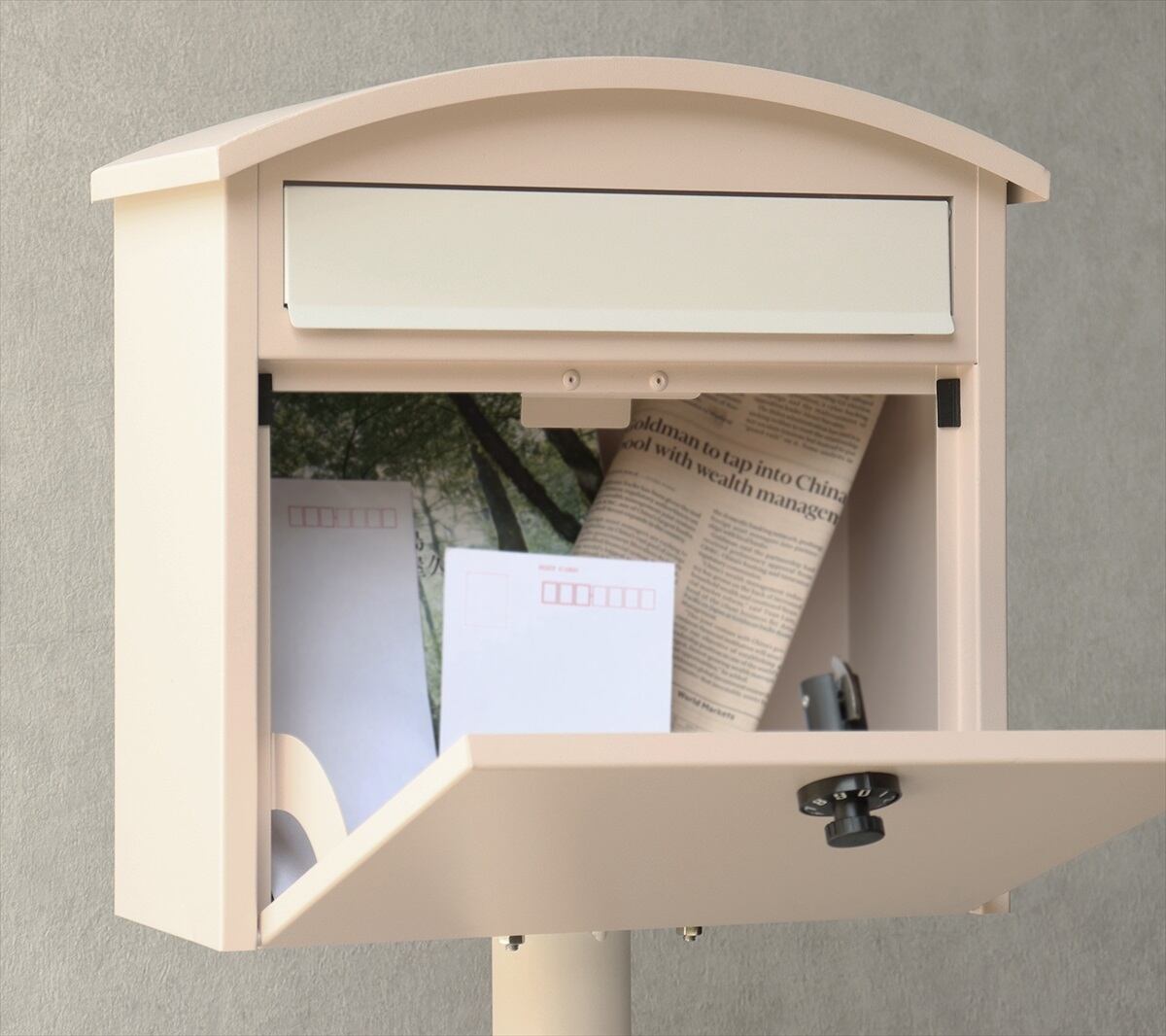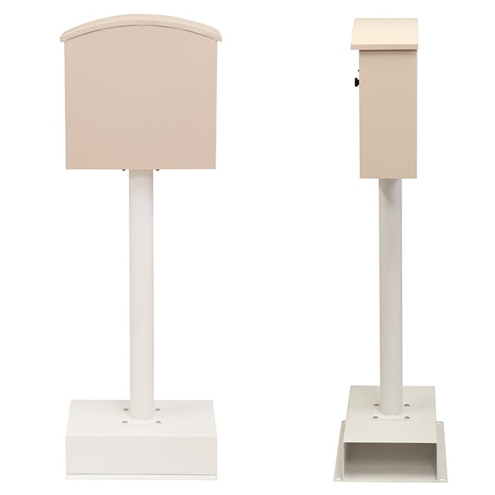 ・2色展開:本体カラーは、玄関先を明るく彩る、ピンクベージュとブルーグレーで塗装仕上げされており、脚、台座、投函口は、ホワイトーカラーで