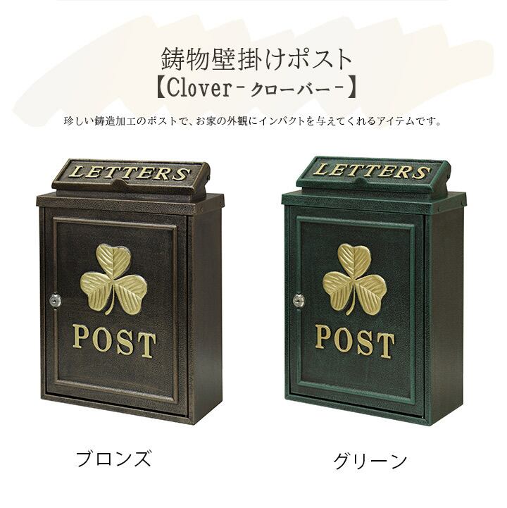 鋳物壁掛けポスト【Clover(クローバー)】 おしゃれ 人気