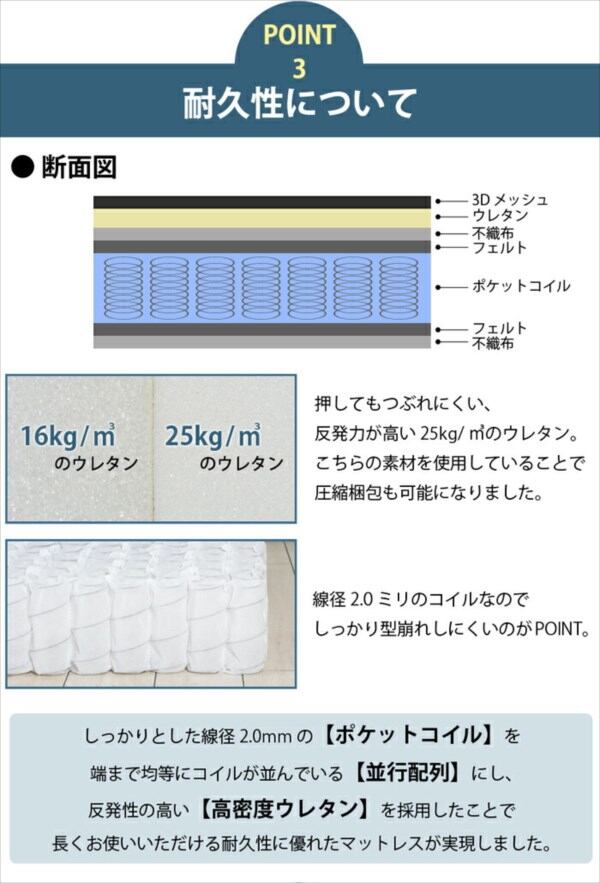 ポケットコイル スモールセミシングル 80cm SSSサイズ マット ポケットコイルマット 通気性 高耐久ウレタン ポケットコイルマットレス SSS マットレス おしゃれ 人気