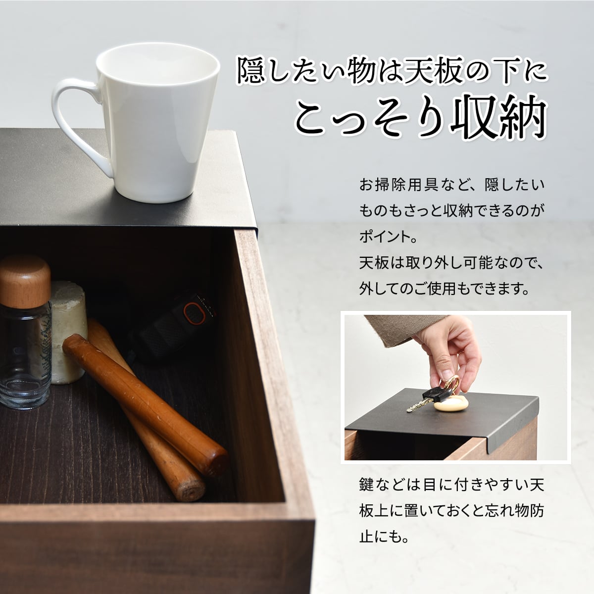 素 材:【本体】桐の天然木(ラッカー塗装)【蓋/フレーム】スチールパイプ(粉体塗装)
