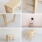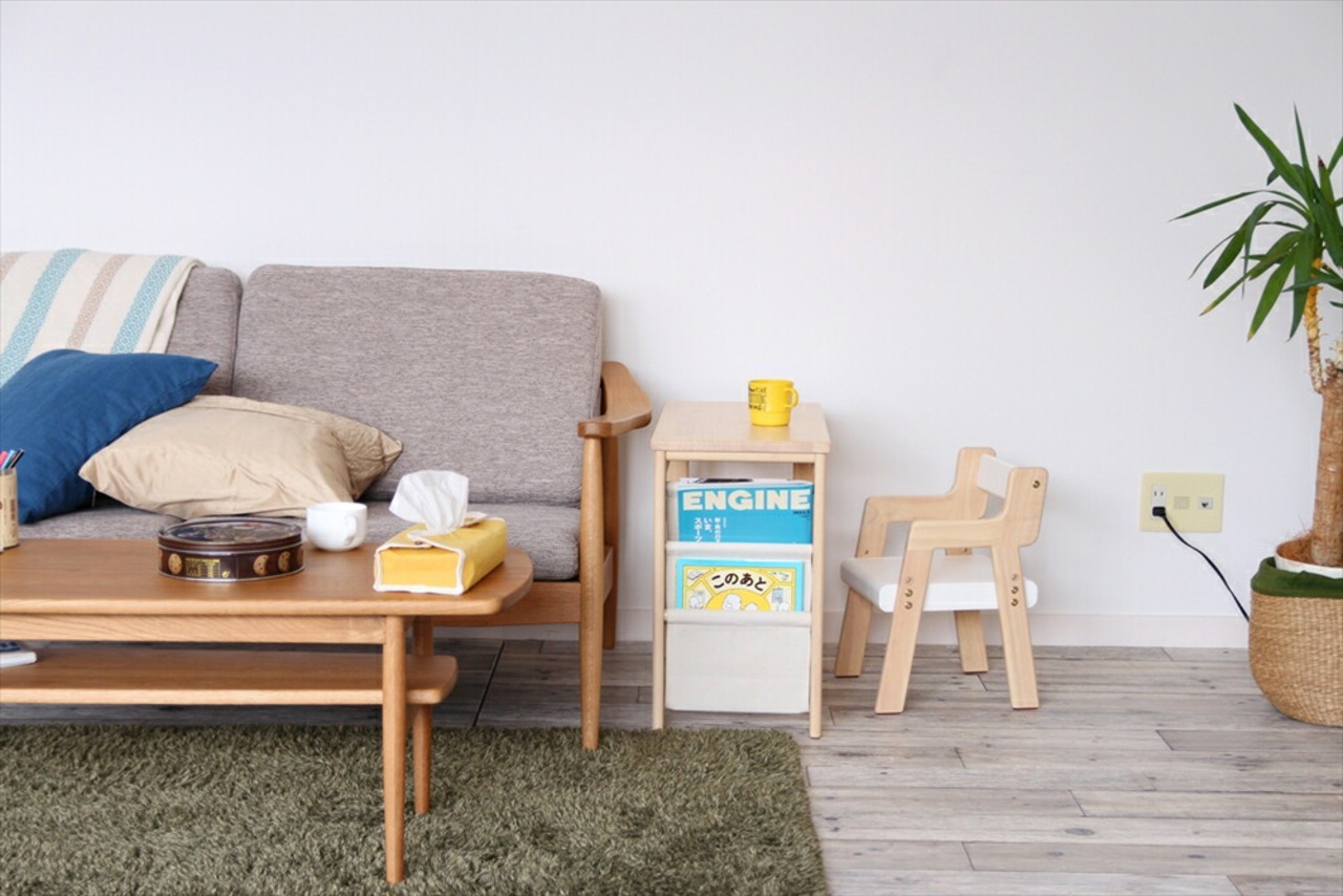 材質:(デスク)天板、脚:天然木(ラバーウッド材)、ラック:帆布(綿35%、ポリエステル65%)、(チェア)フレーム:天然木(ラバーウッド材)、座面:繊維板(MDF)
