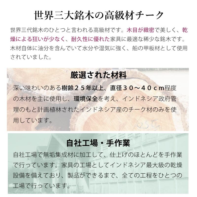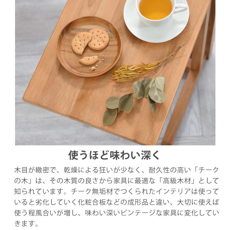 チーク無垢材を贅沢に使用した、木のぬくもりが感じられるサイドテーブル。
