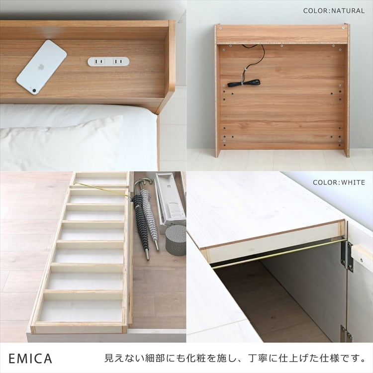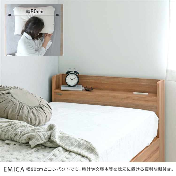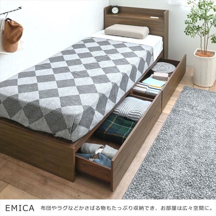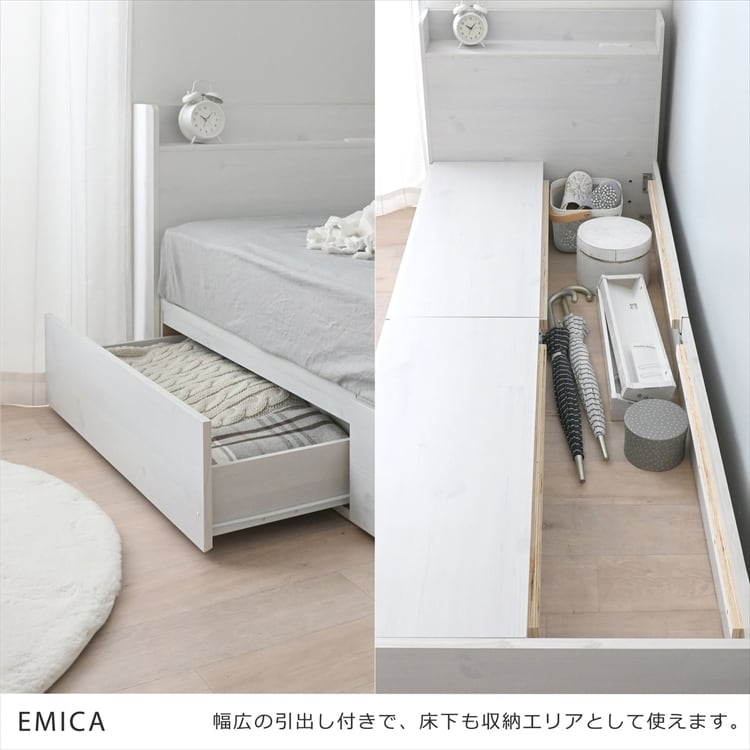 EMICA(エミカ) 収納付きベッド(引出し2杯/ロータイプ)3色展開 収納ベッド セミシングル 2杯 幅80cm おしゃれ 人気