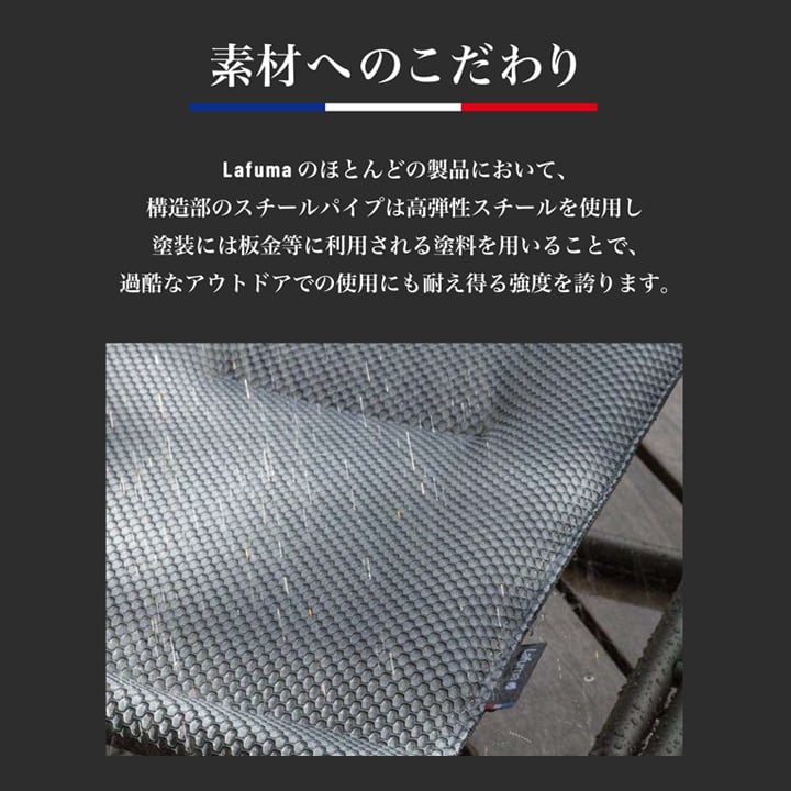 ・シートとフレームを繋ぐクリップサスペンションシステム(Lafuma特許)を採用しています。