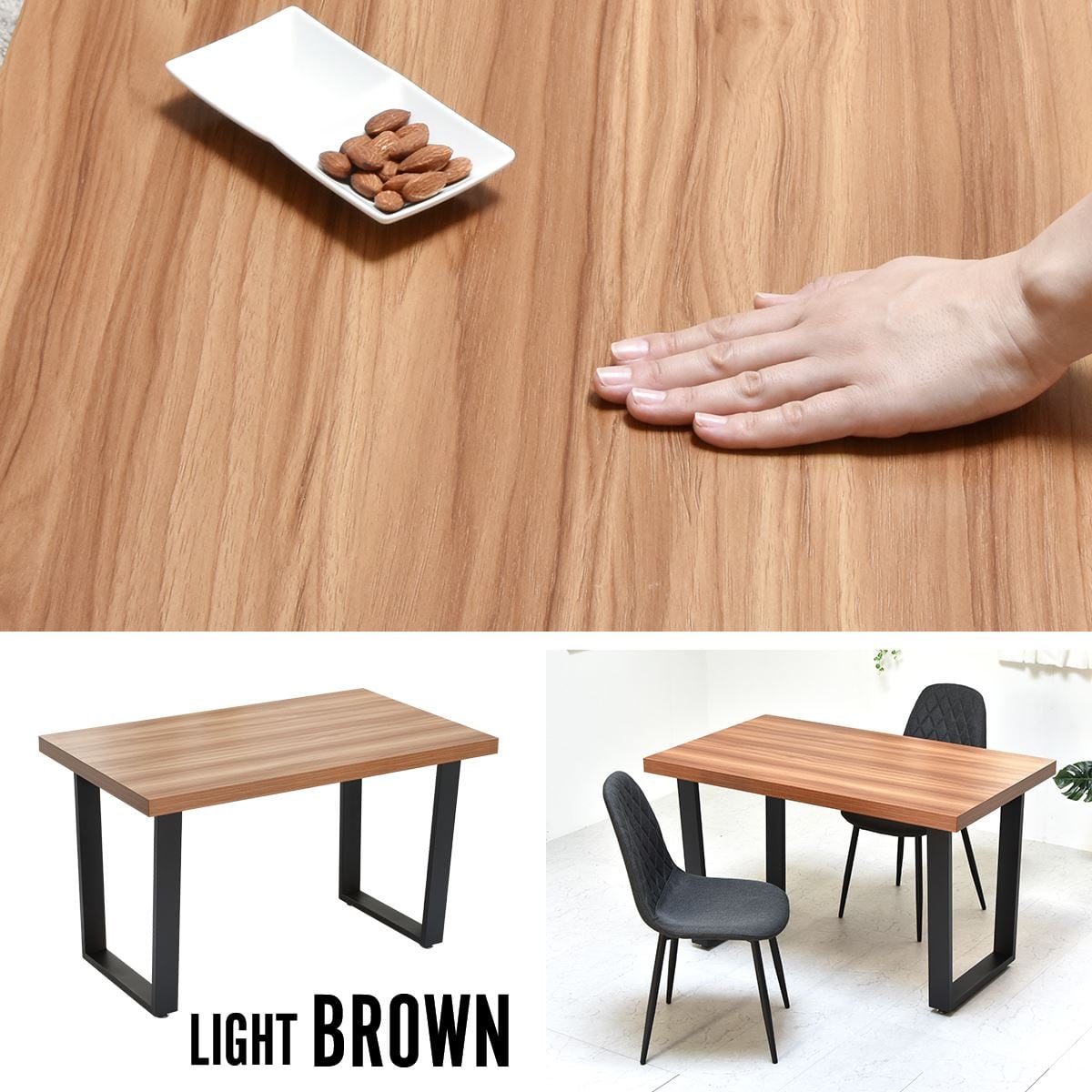 メラミンダイニングテーブル 120幅 台形脚 ONDT-0055 机 テーブル ダイニング 食卓 リビング お部屋 幅120cm 高さ72cm 木目調 トラペゾイド メラミン アイアン 粉体塗装 シンプル インダストリアル かっこいい モダン おしゃれ ダークブラウン ナチュラル 暖かみ おしゃれ 人気