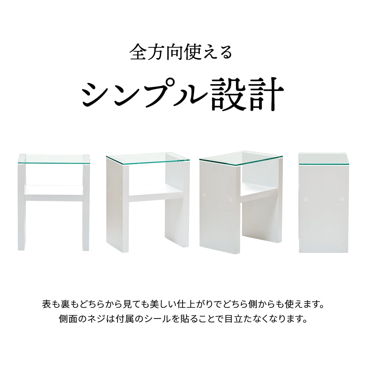 素 材:【天板】8mm強化ガラス 【棚板/側板】中質繊維板にPVC貼り(塩化ビニルシート)