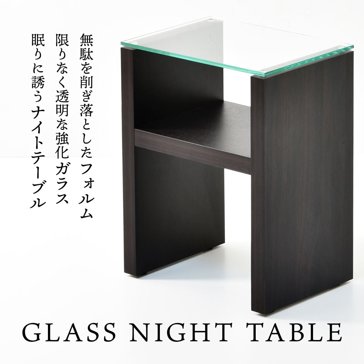 無駄を削ぎ落としたシャープでソリッドなガラスナイトテーブルでベッドサイドやソファサイドで使いやすいコンパクトなサイズ感。高さがあることで、脚元に照明を入れて間接照明としたり、中板にお気に入りの雑貨や本をディスプレイしたりといろいろな楽しみ方のできるナイトテーブルになりました。