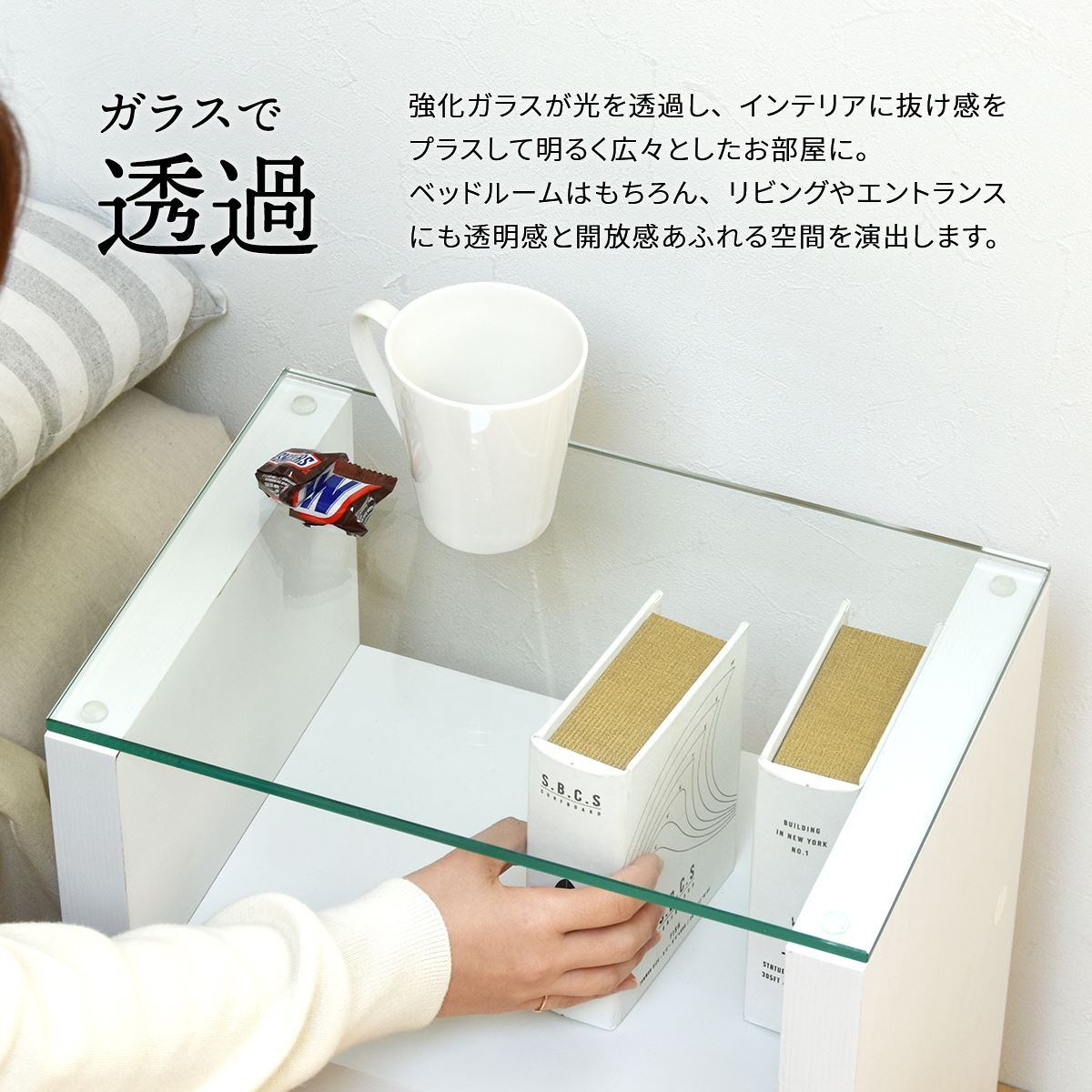 H型 ガラス ナイトテーブル W380×D260×H485mm 強化ガラスガラスサイドテーブル ソファサイドテーブル ベッドサイドテーブル ガラステーブル ガラス製 ベッドサイド おしゃれ 人気
